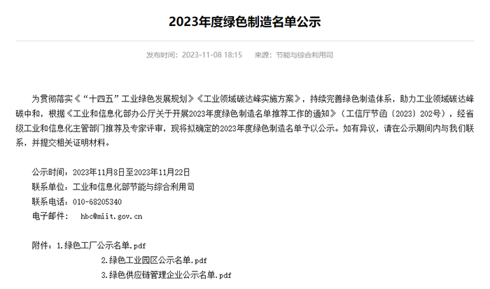 據(jù)了解,“綠色工廠”是由國家工業(yè)和信息化部組織開展的全國性評選活動,要求企業(yè)積極貫徹落實“十四五”工業(yè)綠色發(fā)展規(guī)劃,強化綠色制造標桿引領,發(fā)揮以點帶面示范作用,引領制造業(yè)綠色轉(zhuǎn)型。被評選為綠色工廠的企業(yè),意味著在保證產(chǎn)品功能、質(zhì)量以及制造過程中員工職業(yè)健康安全的前提下,引入生命周期思想,滿足基礎設施、管理體系、能源與資源投入、產(chǎn)品、環(huán)境排放、環(huán)境績效的綜合評價要求。